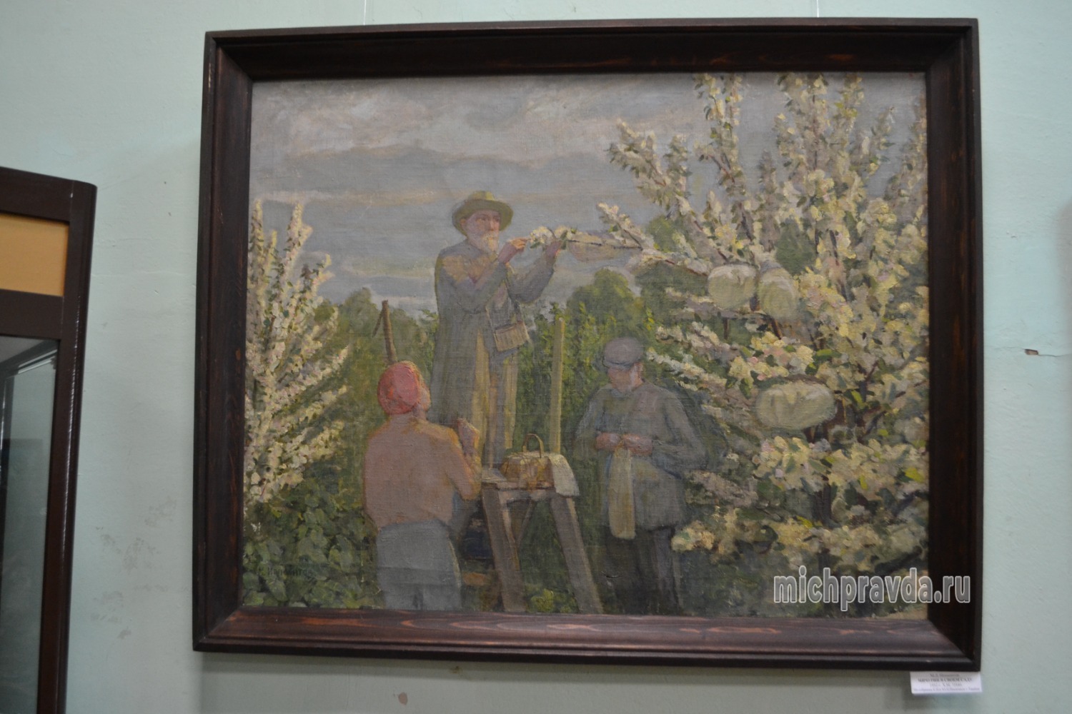 Над мичуринской темой работал ещё один народный художник СССР, уроженец города Козлова Александр Герасимов.