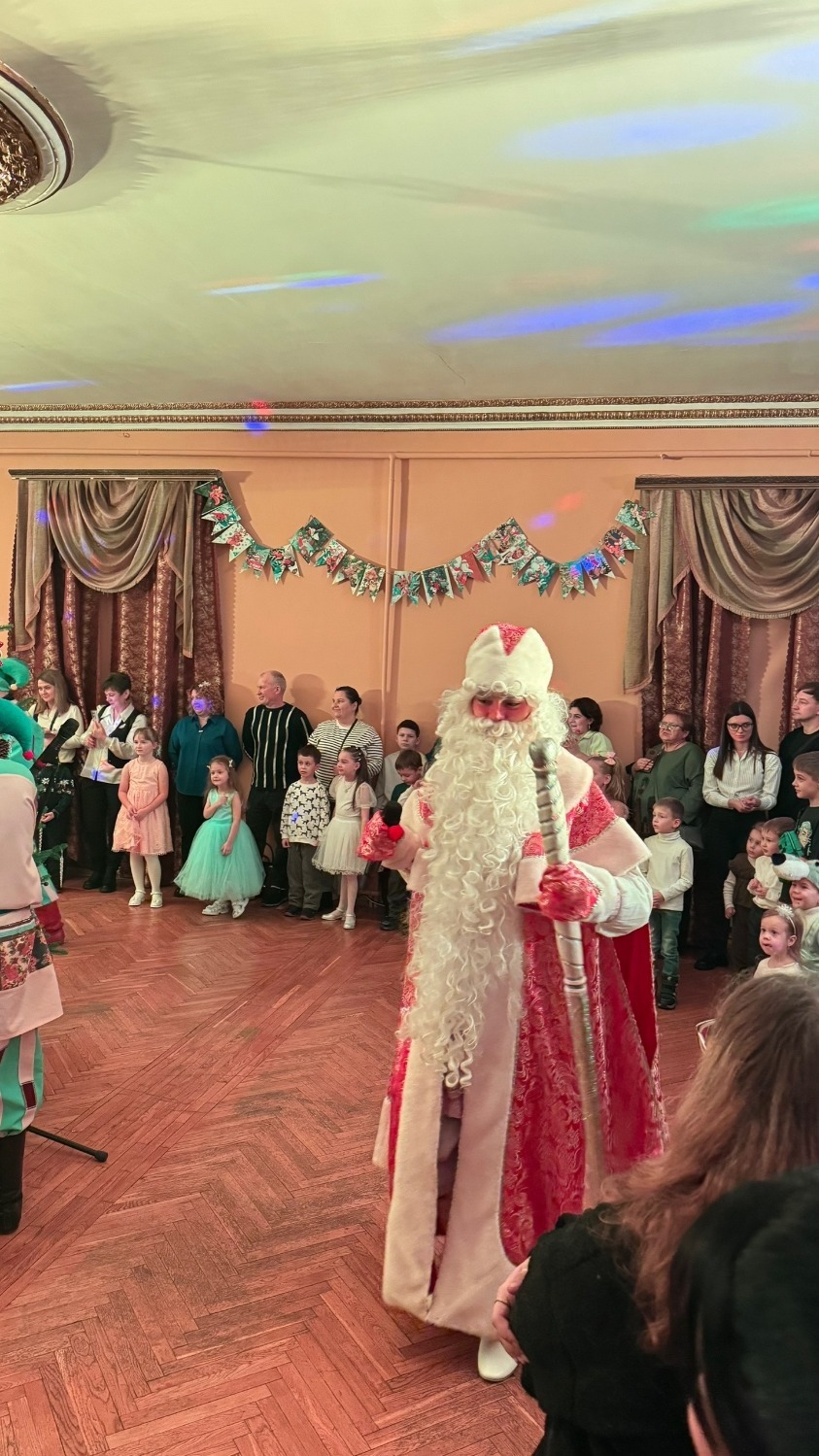Перед хороводами у ёлки малышам организовали творческий челлендж — ребята подбирали ключи к замкам, разрисовывали подковы и даже крутили рулетку, зарабатывая монетки, которые можно было потом обменять на семь позитивных предсказаний на новый 2026 год.