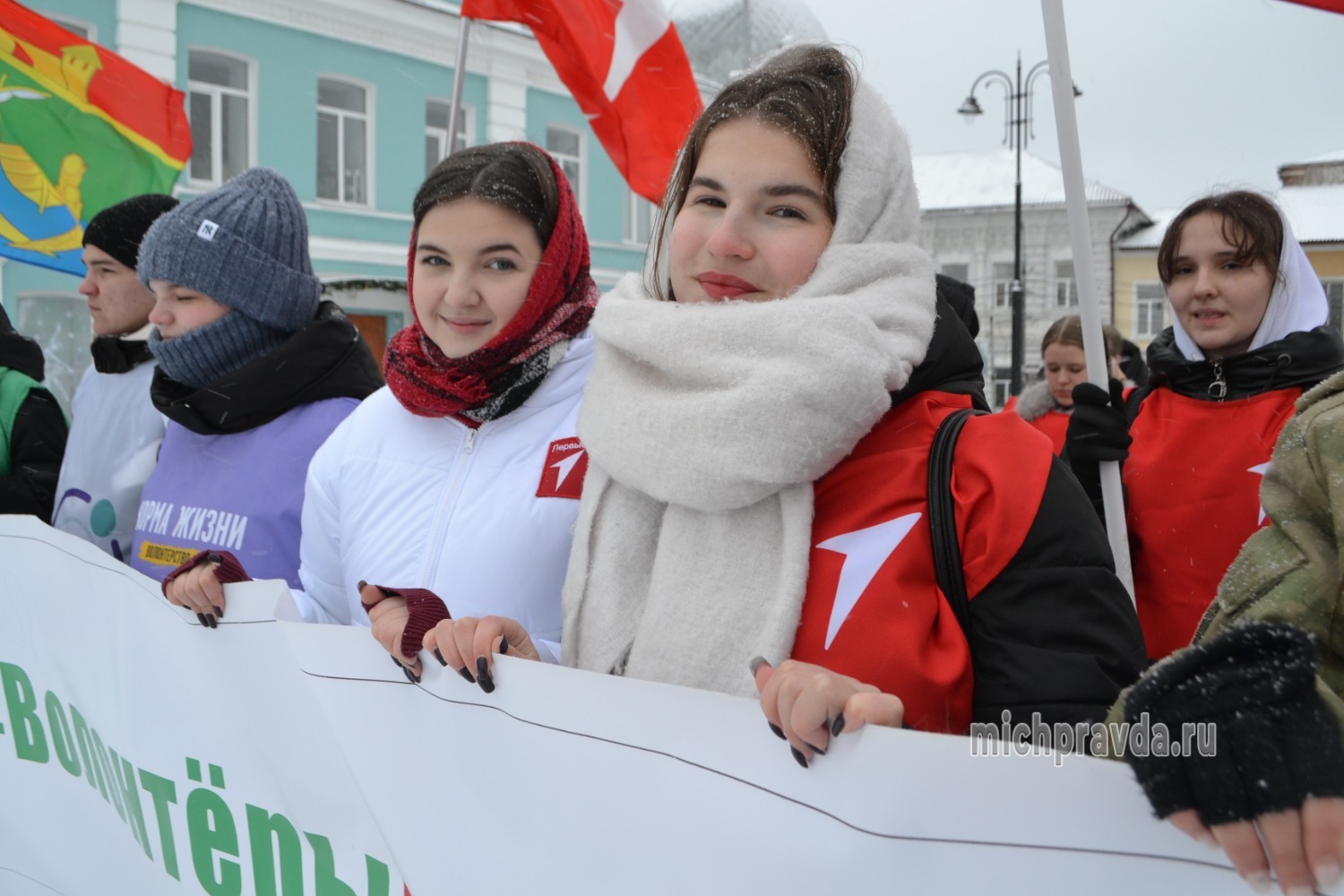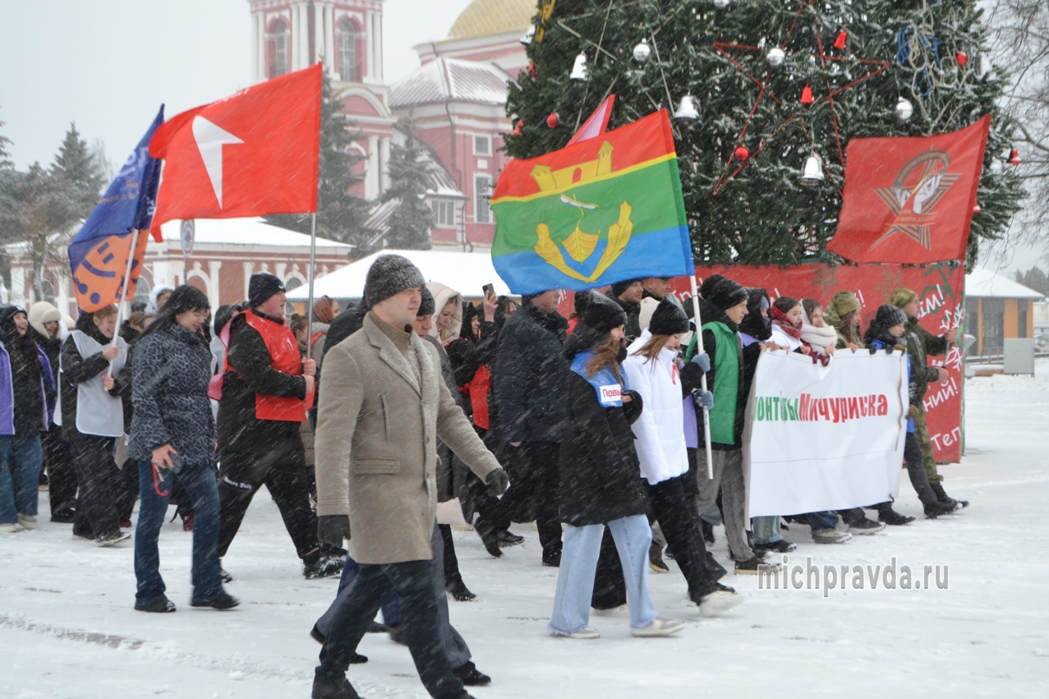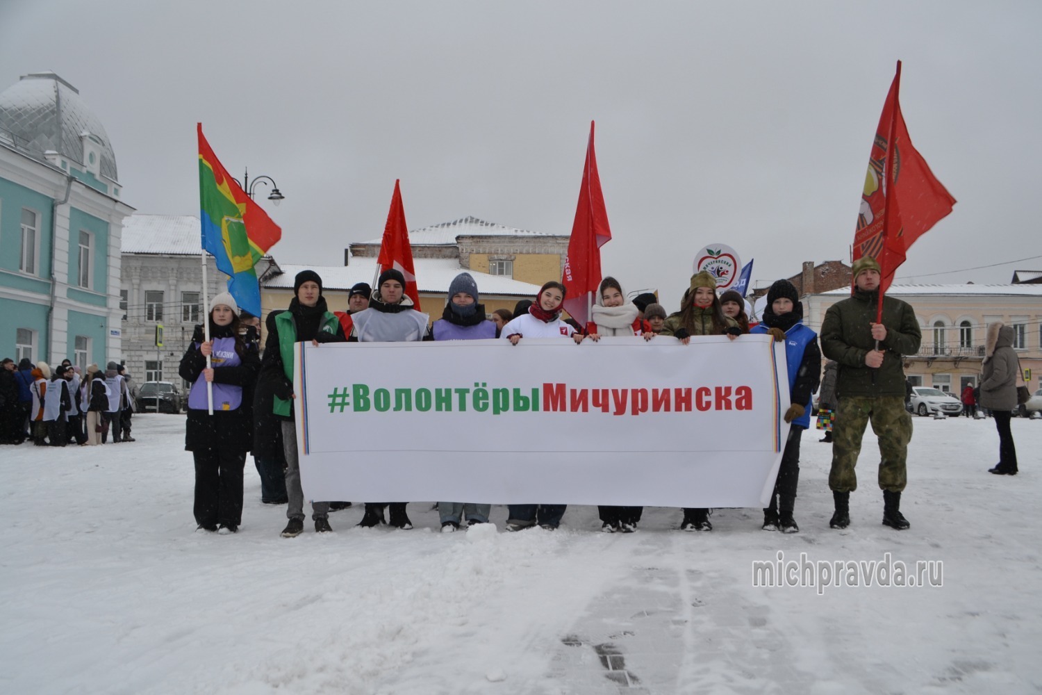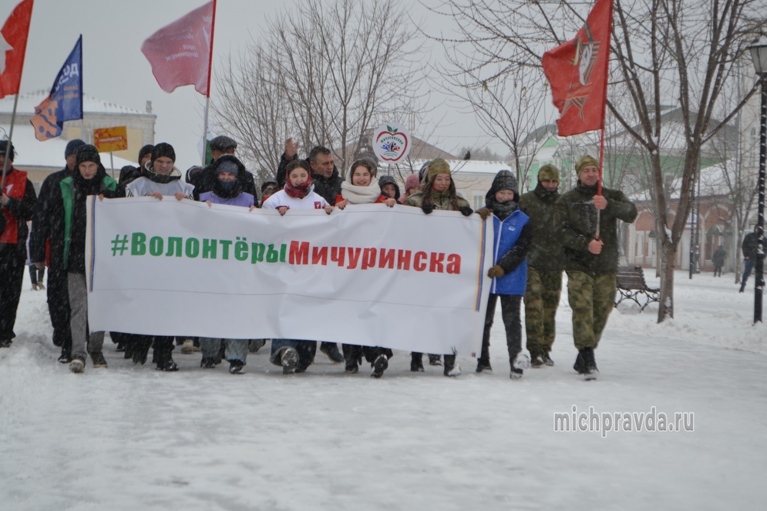 Шествие прошло от Мичуринской детской хореографической школы до площади имени Мичурина. Жители наукограда и Мичуринского округа, вооружившись хорошим настроением, в этот по-настоящему зимний и снежный день торжественно пронесли флаги и транспаранты различных волонтёрских объединений. К ним присоединились представители депутатского корпуса и руководство города.