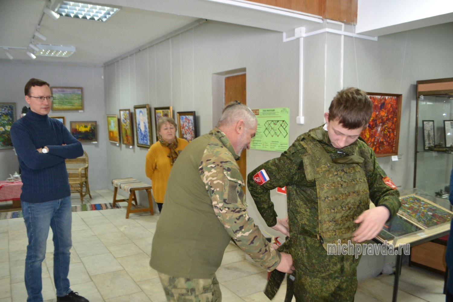Первыми посетителями выставки стали ученики структурного подразделения школы № 17 «Юнармеец», расположенного в микрорайоне Учхоз «Комсомолец». В качестве почётного гостя на церемонию открытия пригласили руководителя добровольческой группы «Волонтёры — фронту 68» Александра Мыскина.
