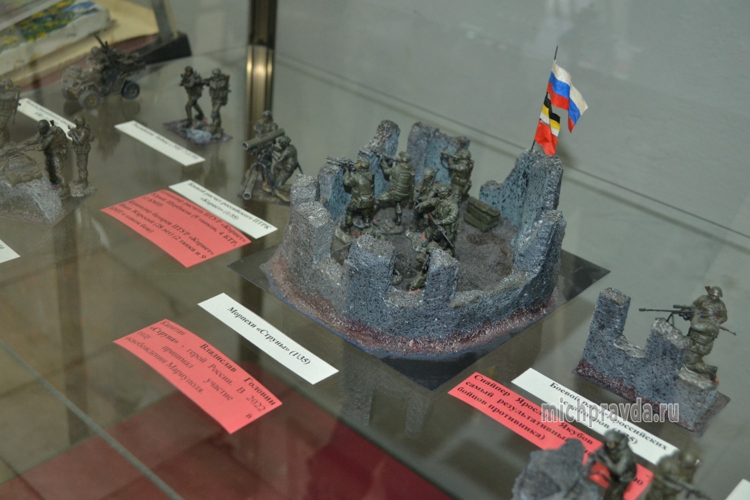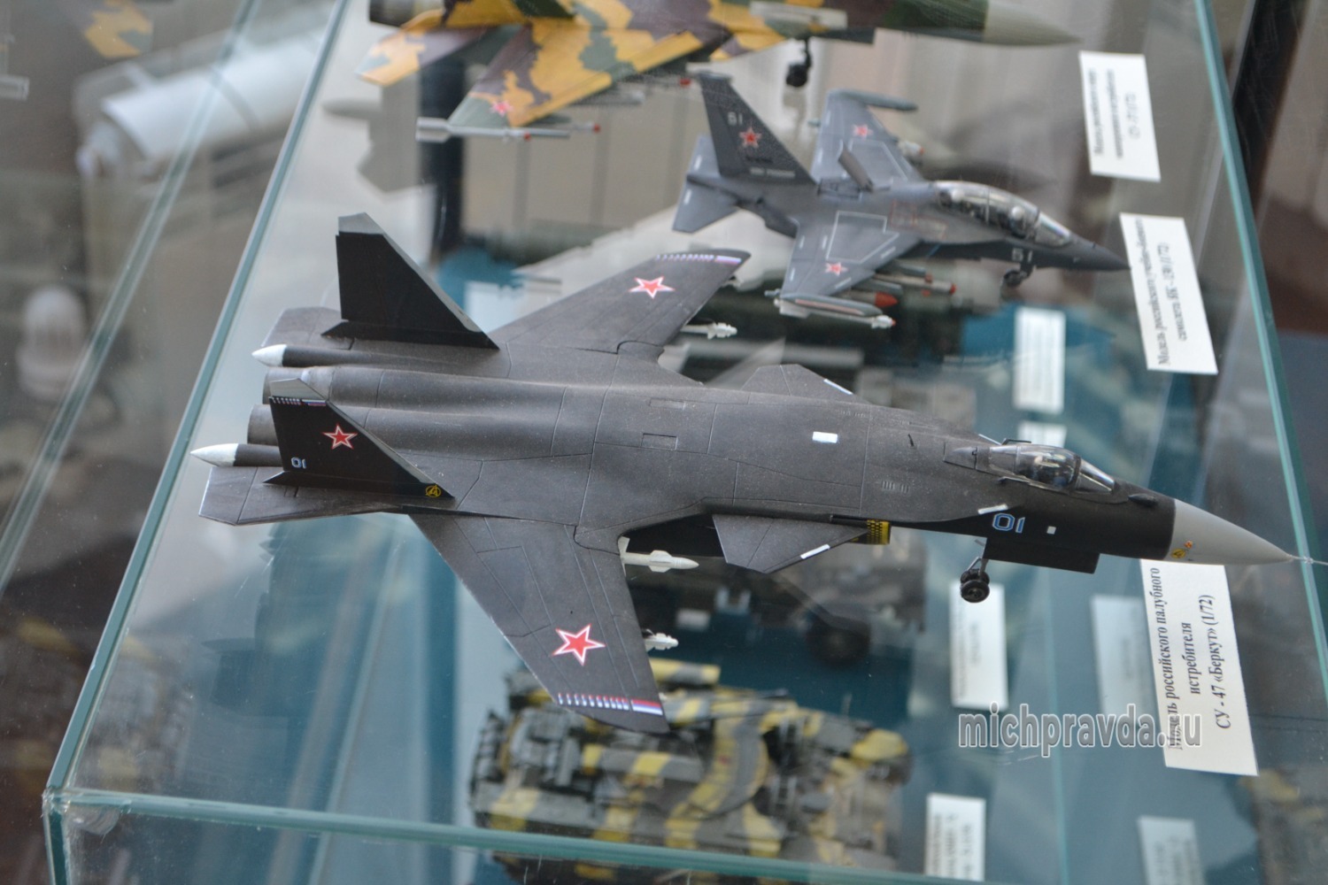 Новая выставка включает в себя модели танков, самоходных артиллерийских установок, реактивных систем залпового огня (РСЗО). Они представлены в масштабе 1:35. В экспозиции можно также увидеть модели самолётов и вертолётов в масштабе 1:72, кораблей — 1:700.